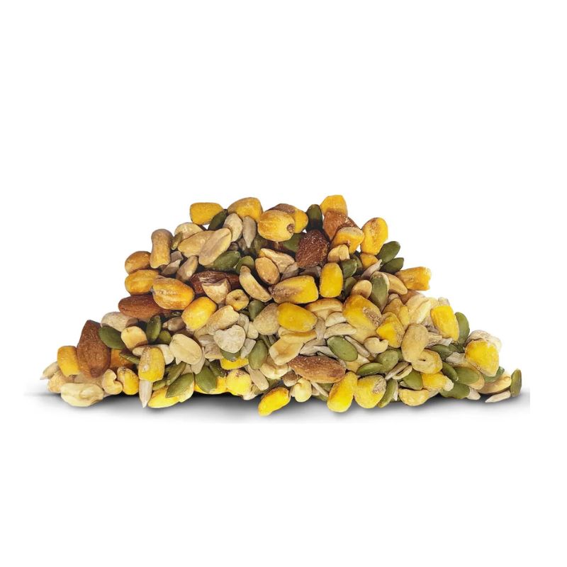 (Almendras saladas, maíz frito, maní salado, semillas de zapallo y de girasol)